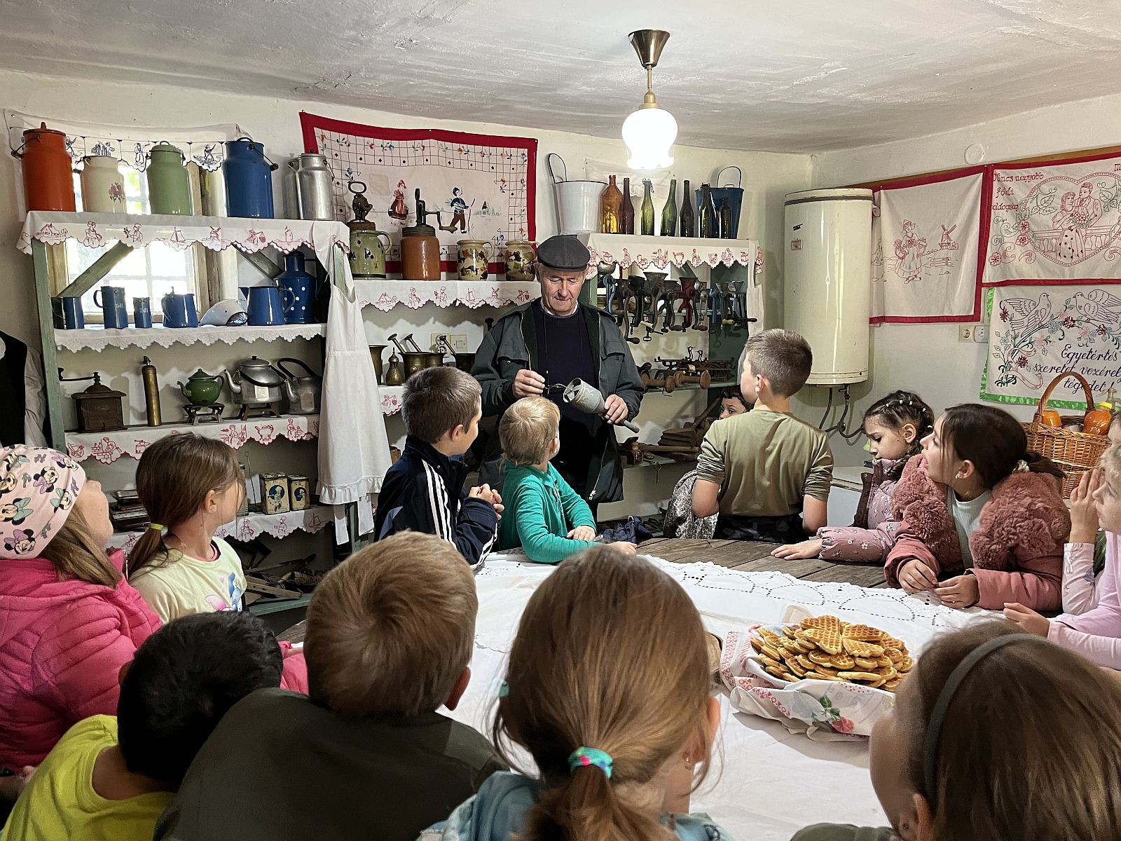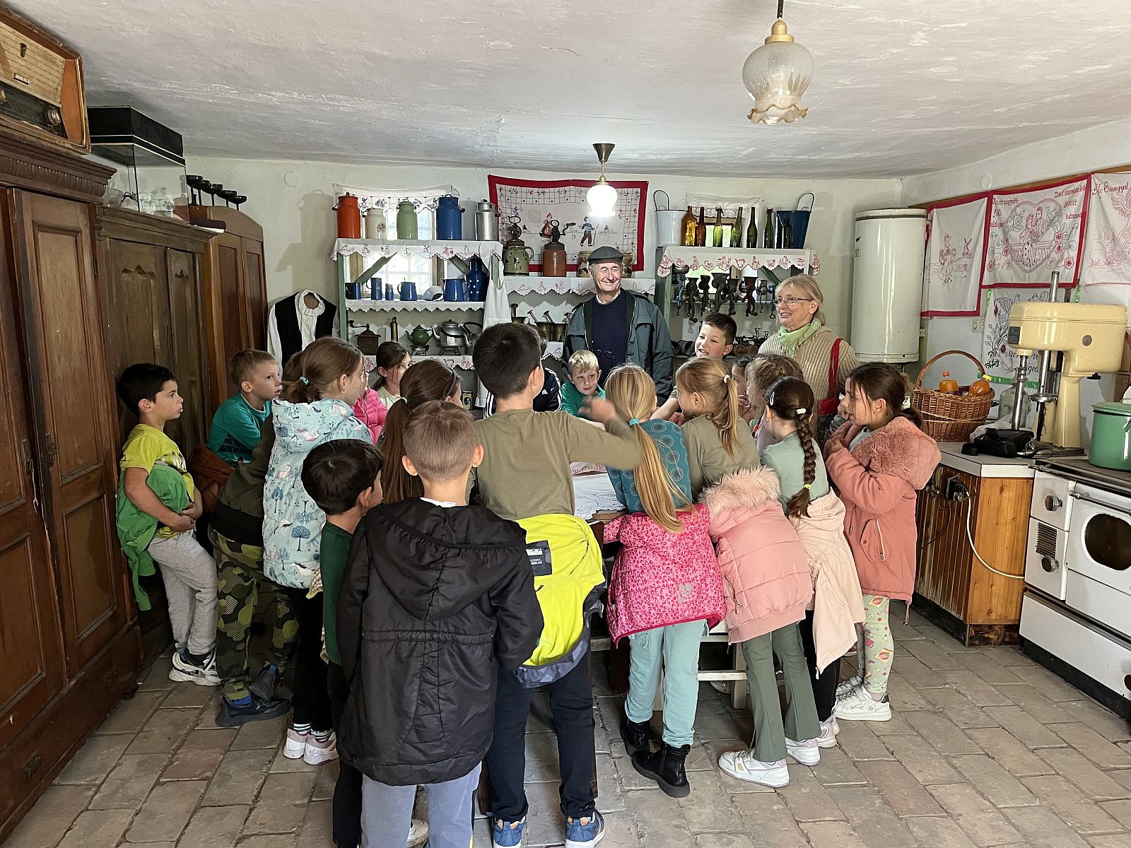 Gospodin Časnji Imre i gospođa Magda su dočekali našu grupu i pokazali nam lepo uređene, autentične seoske kuće. Njihove uređene sobe i predmete koju su se koristili. Zanimljive i poneke nama nepoznate predmete su nam predstavili, kao što je na primer berilica kamilice, alat za pravljenje krova od slame. I takozvana čista soba je bila zanimljiva, mnogi su prvi put videli i čuli za ovu prostoriju. Na kraju smo probali keksiće ispečene u pekaču napravljenom od livenog gvožđa i razgovarali smo uz čaj. Takođe smo isprobali i igralište u dvorištu muzeja.