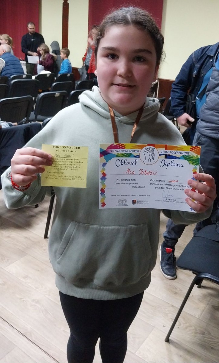 U ponedeljak, 17. novembra 2025. godine, je povodom Dana tolerancije održano devetnaesto po redu recitatorsko takmičenje. Učenica 4.1 odeljenja, Mia Tobdžić, osvojila je zlatnu medalju i posebnu nagradu za recitovanje pesme na mađarskom jeziku (,,Kiskarácsony, nagykarácsony" Zene Ovi).